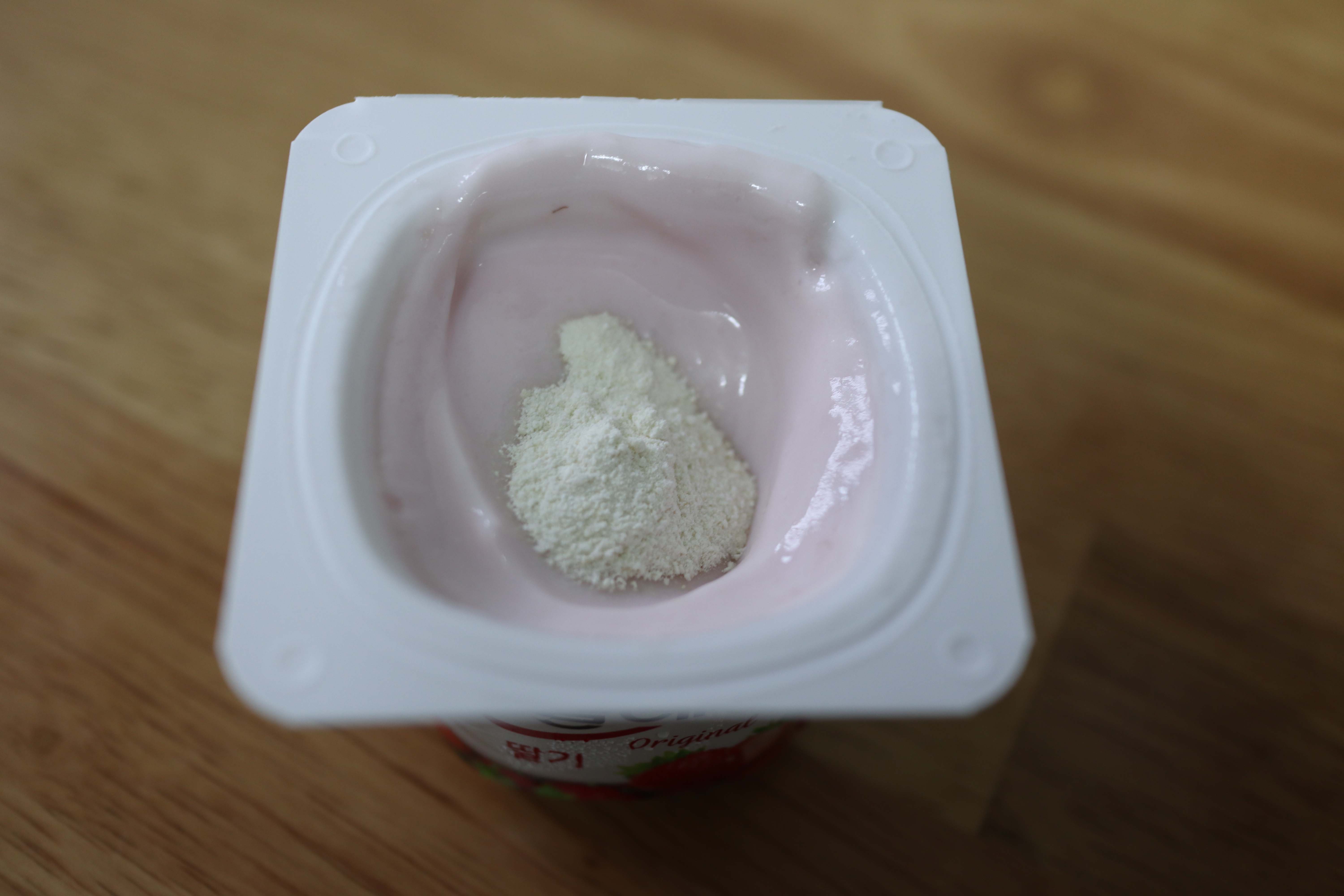 드시모네 캡슐형은 물과 함께 삼켜 먹으라고 나왔지만 문의를 해보니 삼키기가 힘든 분들은 캡슐을 분리해서 안의 가루를 물에 타서 마셔도 된다고 했습니다. 물 뿐만 아니라 요거트에 타서 먹어도 되는데요 그래서 저도 처음에는 요플레를 사서 섞어 먹었는데요 딸기맛 요플레가 맛있긴 하지만 나중에는 귀찮아서 그냥 열심히 알약 자체로 삼켜먹고 있습니다.